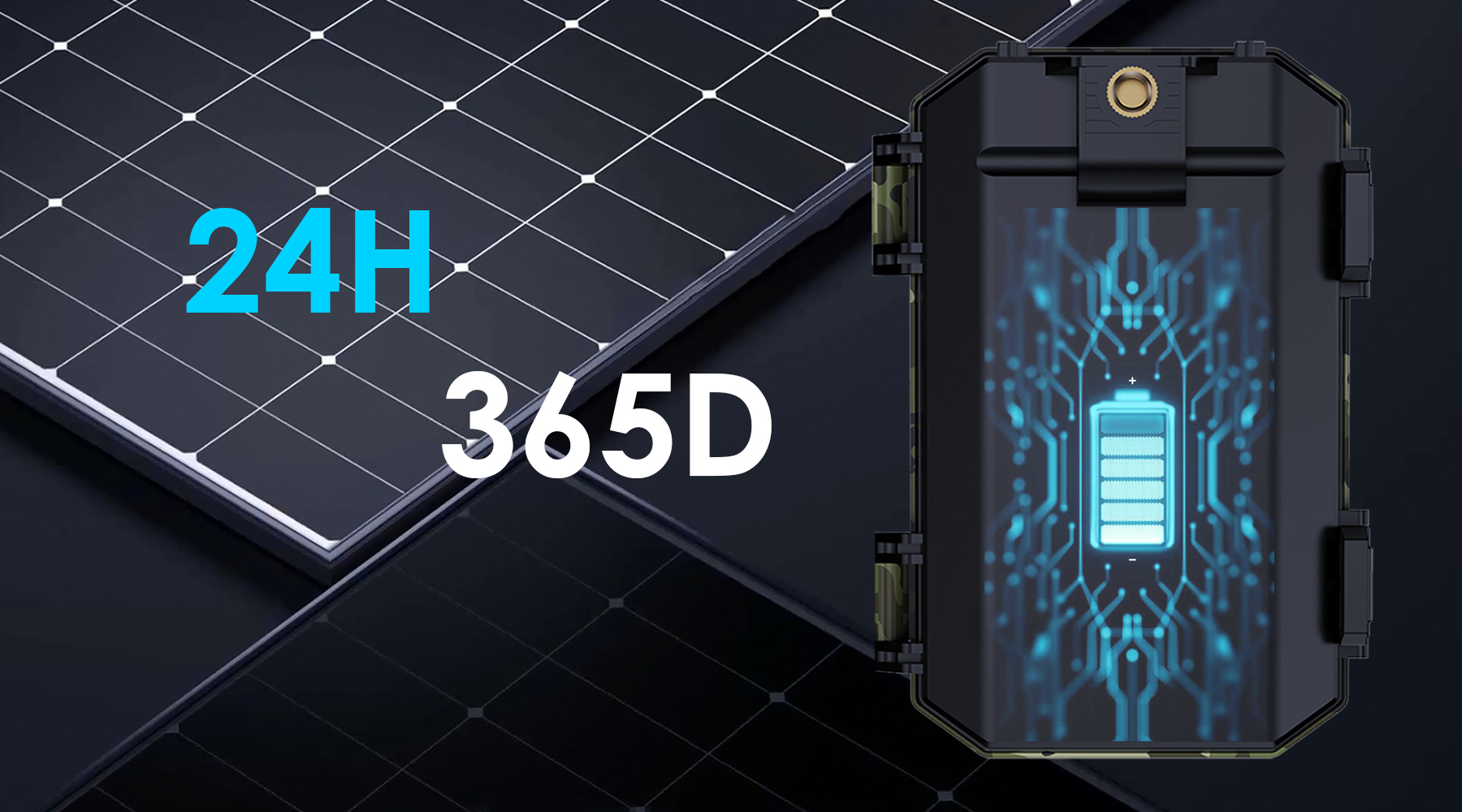 The camera is powered by solar energy, ensuring continuous operation year-round without frequent battery changes. Energy efficient and environmentally friendly, perfect for long-term surveillance.